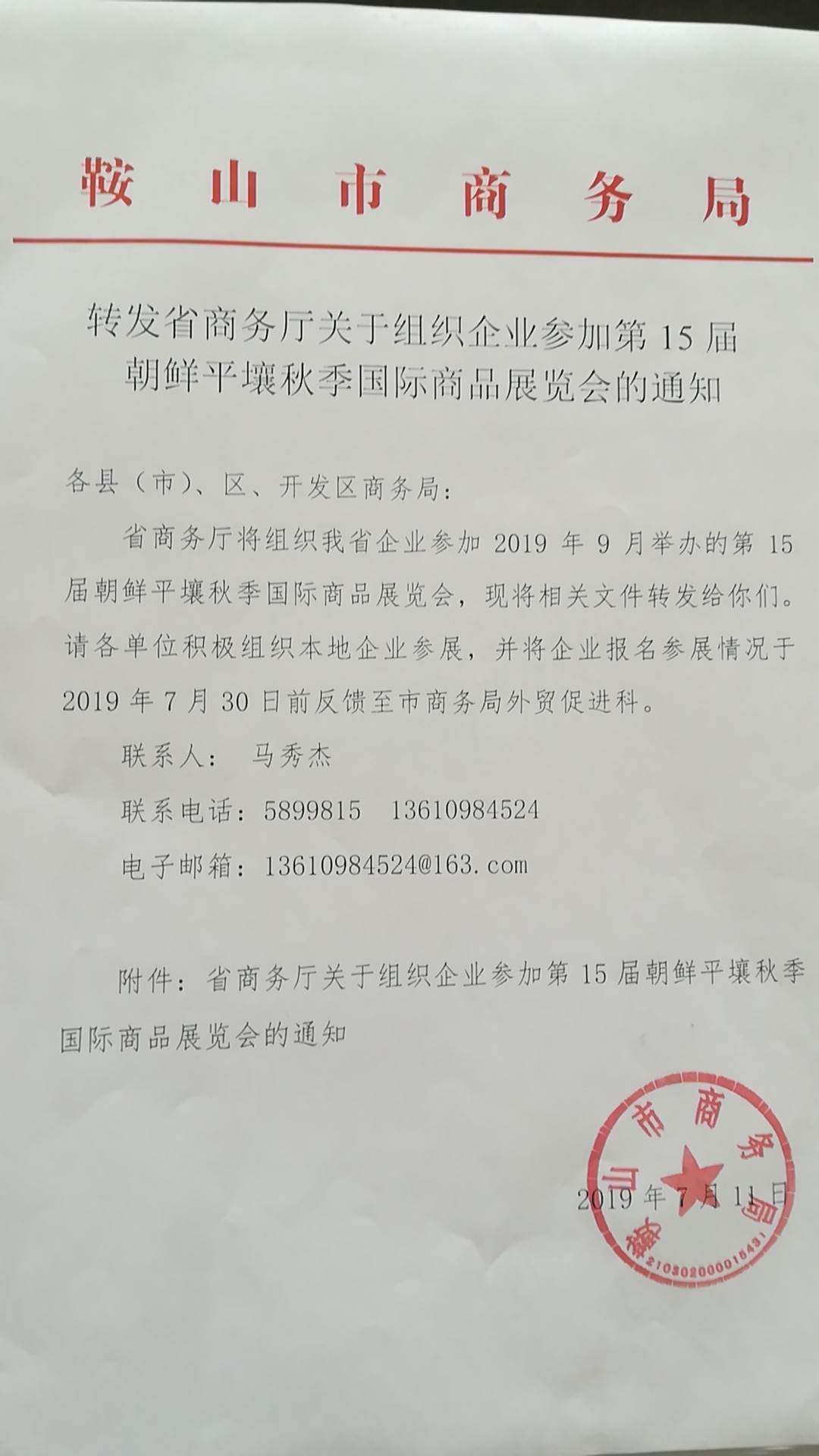 关于组织企业参加第15届朝鲜平壤秋季国际商品展览会的通知
